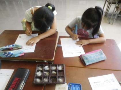 観察して発見したこと、分かったことを観察カードに一生懸命書き込みます。