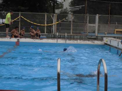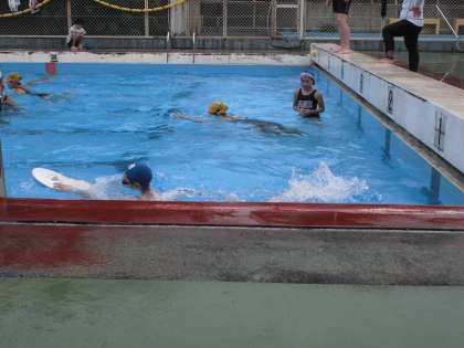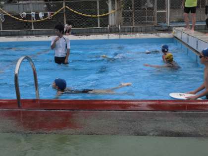 小雨ですがプールに入りました。