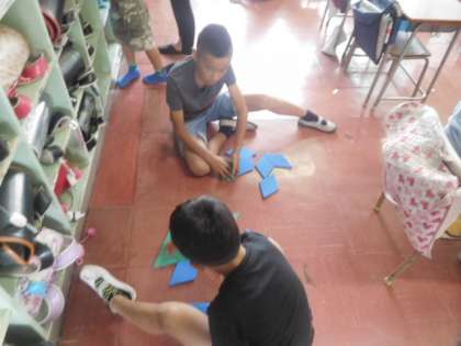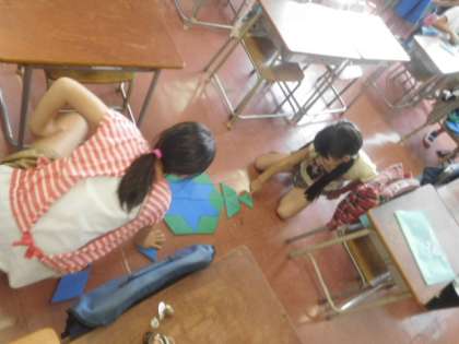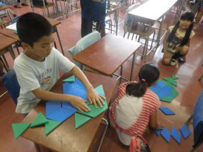 4年生ではいろいろな三角形とひし形を使って色々な模様を作っていました。