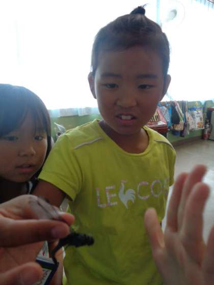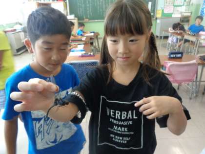 昆虫を触ることができる子供がたくさんです。