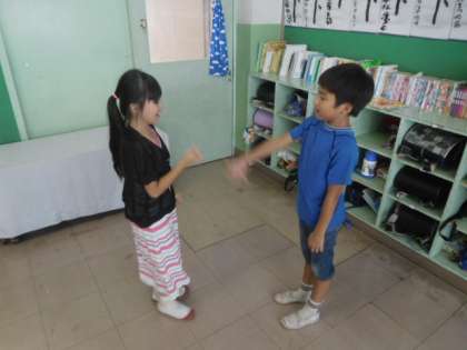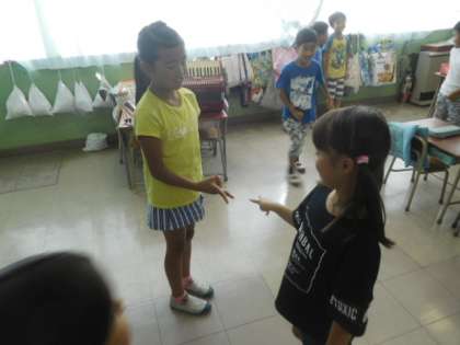 外国語でジャンケンをしながらコミュニケーションをとります。