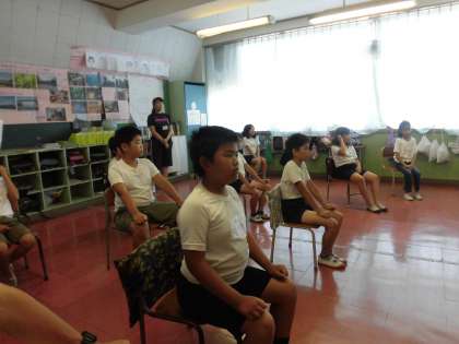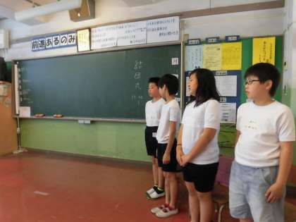 7月10日5年生は清水移動教室の結団式を行いました。司会の人も、自分の目標をいう人もみんな緊張感あふれる素晴らしい態度でした。