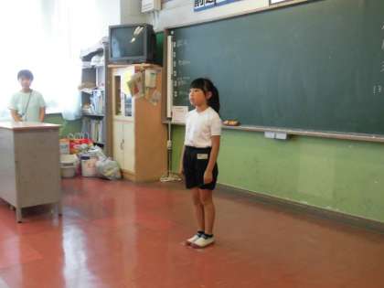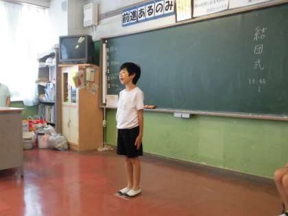 7月10日5年生は清水移動教室の結団式を行いました。司会の人も、自分の目標をいう人もみんな緊張感あふれる素晴らしい態度でした。