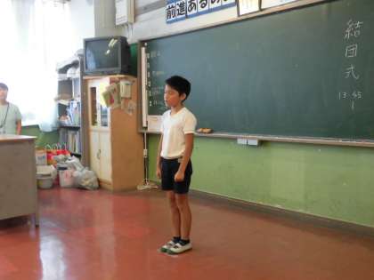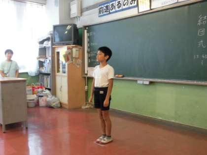 7月10日5年生は清水移動教室の結団式を行いました。司会の人も、自分の目標をいう人もみんな緊張感あふれる素晴らしい態度でした。