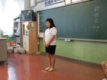 7月10日5年生は清水移動教室の結団式を行いました。司会の人も、自分の目標をいう人もみんな緊張感あふれる素晴らしい態度でした。