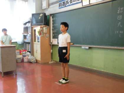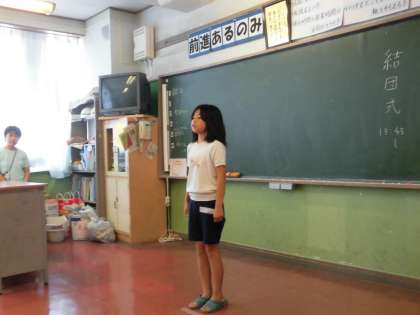 7月10日5年生は清水移動教室の結団式を行いました。司会の人も、自分の目標をいう人もみんな緊張感あふれる素晴らしい態度でした。