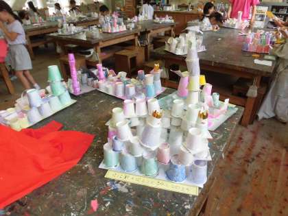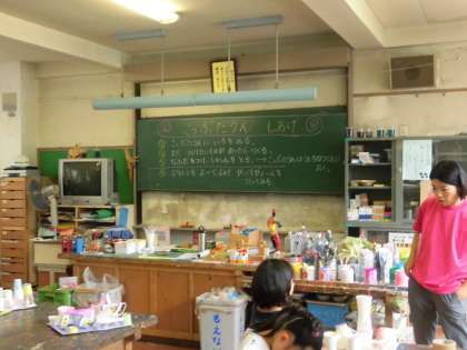 1年生の今日の図工の授業は「コップタウン」でした。早く終わった人はまた、別の楽しい作品を作っていました。