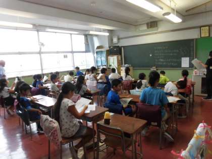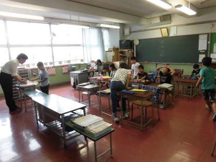 2年生は歩みなどを集めていました。4年生は今日配布するものを配っていました。