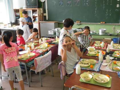 今日の1年生の給食の時間の様子です。