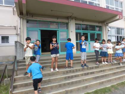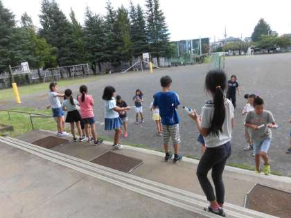 4年生が空気でっぽうを使って理科の学習をしていました。どうやったら遠くに飛ぶのでしょう?