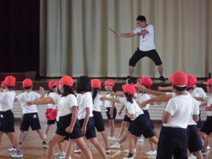 先生を見ながら、同じになるように