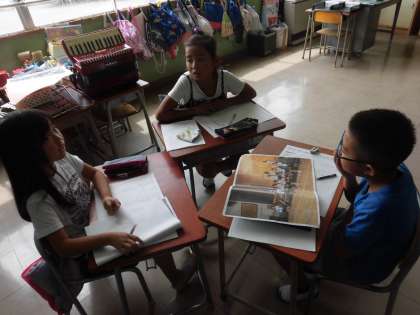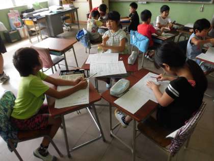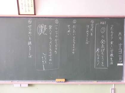 3年生が国語の授業で自分たちがまとめたことを1年生に発表するために準備を進めていました。