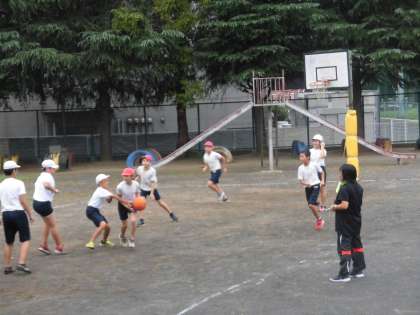 2学期2回目のクラブ活動。外球技クラブです。今日はバスケットボールをおこなっていました。