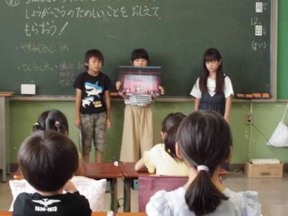 今日、3年生が国語の「つたえよう 学校生活」という教材のまとめとして、中野北小学校の行事などを1年生に分かりやすく伝える発表会を行いました。練習中はなかなか上手にできなかったところも本番ではしっかりと修正して発表できました。