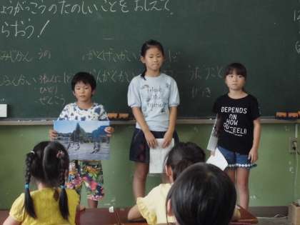 今日、3年生が国語の「つたえよう 学校生活」という教材のまとめとして、中野北小学校の行事などを1年生に分かりやすく伝える発表会を行いました。練習中はなかなか上手にできなかったところも本番ではしっかりと修正して発表できました。