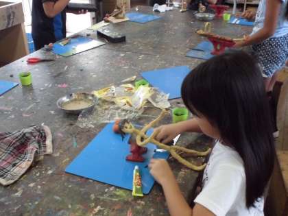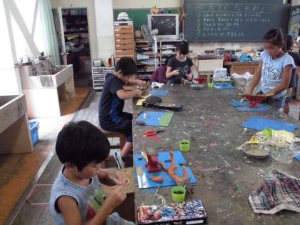 黒や茶色の粘土で、顔や洋服を作り、仕上げる。