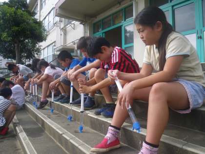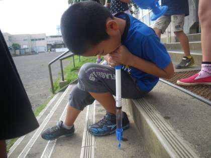 今日は、閉じ込められた水は押しつぶすとどうなるか学習しました。