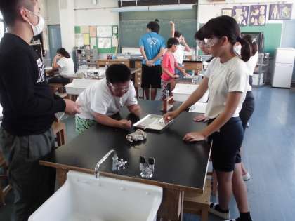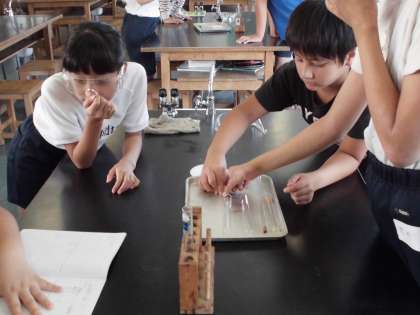 理科室で実験をしていました。