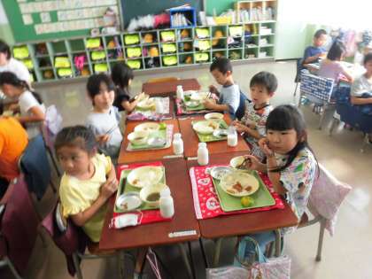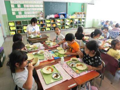 9月19日給食時の様子 1年生