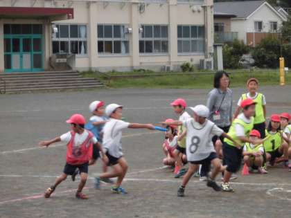 棒引きの後、リレーの練習をしていました。