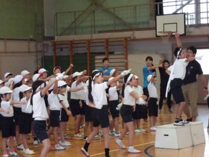 雨だったので、残念ですが体育館で行いました。