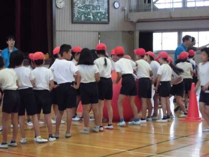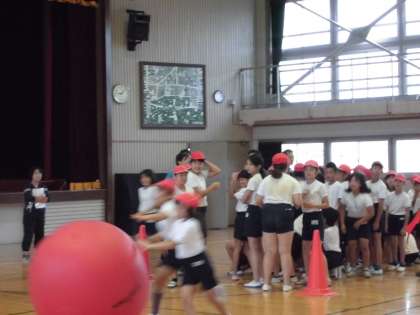 雨だったので、残念ですが体育館で行いました。
