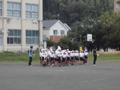 入場、全員リレー、綱引き、中北音頭の移動の練習をしました。