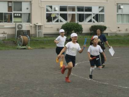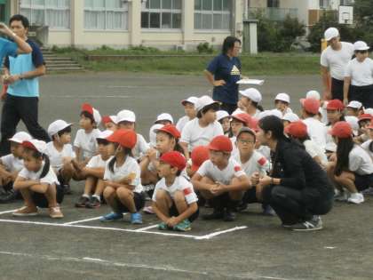 入場、全員リレー、綱引き、中北音頭の移動の練習をしました。