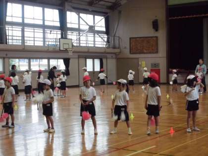 八木節の、ポンポンの棒を持っての練習と、