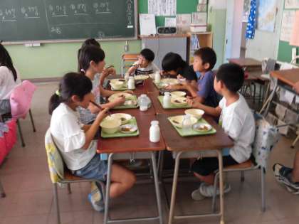 9月28日 給食時の様子 3年生
