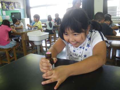空気が温められて、10円玉がポンポン跳ね上がります。どうしてそうなるのか、考える学習でした。