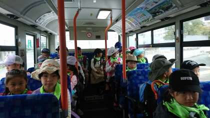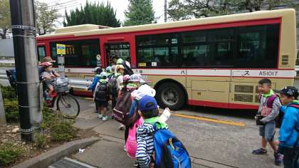 学校の前のバス停からバスに乗りました