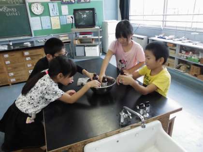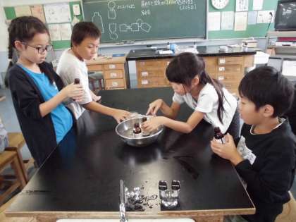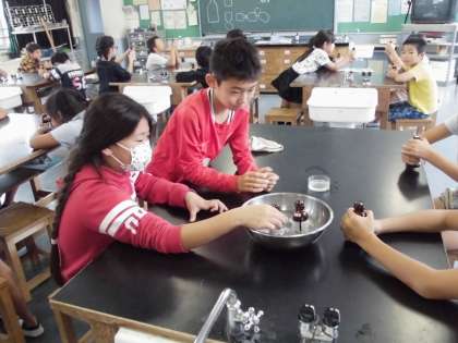 理科は実験をしました。