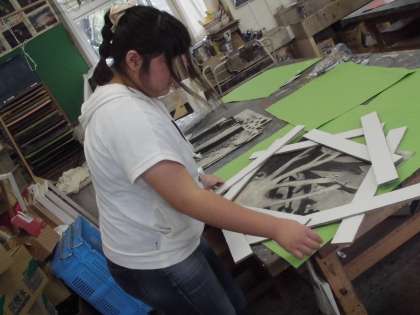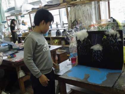 展覧会に出す作品の、仕上げをしていました。