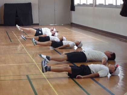 柔軟や腹筋をしていました。
