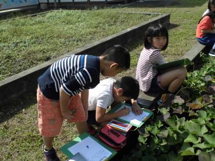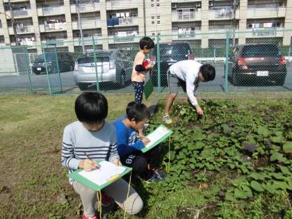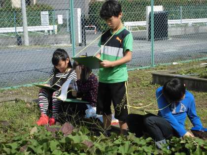 葉っぱと土の中のさつまいもの絵を描いていました。