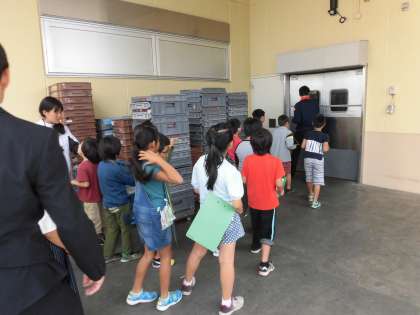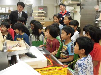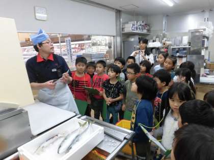 3年生が社会科の学習の一環としてスーパーアルプスの見学に行きました。この見学はスーパーマーケットのバックヤードの見学が中心です。売り場以外のお店の様子を見学させていただきました。