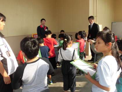3年生が社会科の学習の一環としてスーパーアルプスの見学に行きました。この見学はスーパーマーケットのバックヤードの見学が中心です。売り場以外のお店の様子を見学させていただきました。最後に副店長さんに質問をしました。