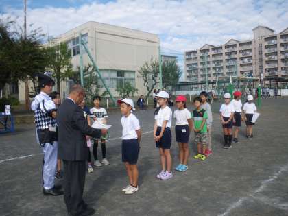 教員がハンターになり、子供たちを捕まえます。いろいろなミッションをクリアしていきます。縦割り班ごとに作戦を立ててのぞみました。