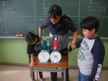 重さ比べ、秤の読み方を学習しました。