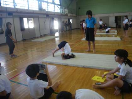 今日はそのために、きれいに前転をすることをめあてに取り組んでいました。