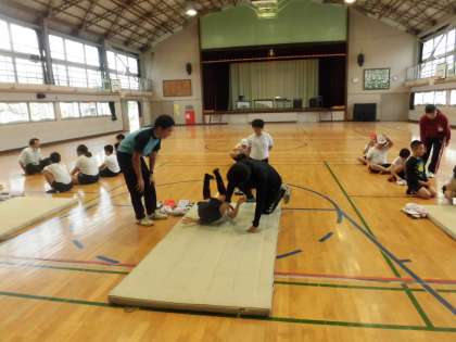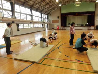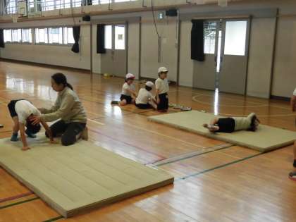 今日のあさひ学級の体育は「大縄跳び」と「マット運動」でした。マット運動ではそれぞれの課題を練習していました。