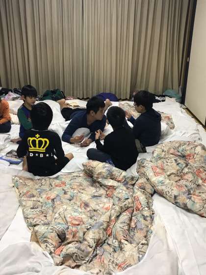 お風呂に入った班あり、お風呂待ちの班あり。