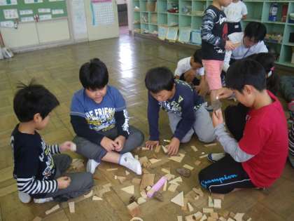 2回目のみんなでつくろうタイムは、縦割り班で作品作りをしました。