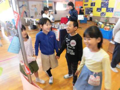 1日目の5時間目までは児童鑑賞です。4時間目に1年生と6年生が一緒に鑑賞しました。6年生がリードしながら作品の説明をしていました。