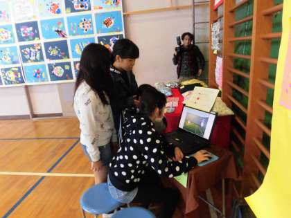 1日目の5時間目までは児童鑑賞です。4時間目に1年生と6年生が一緒に鑑賞しました。6年生がリードしながら作品の説明をしていました。