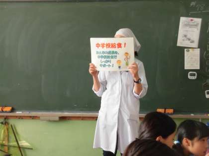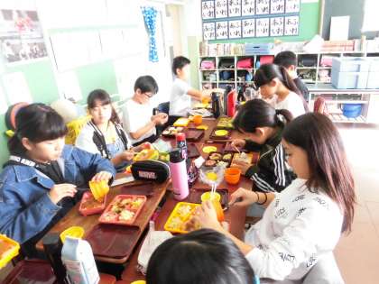 今日、6年生が中学校給食を試食しました。今、中学校の給食はお弁当形式です。
