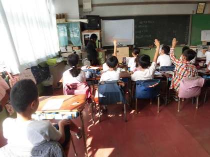 今日は展覧会当日。子供たちは普段の授業を行っています。