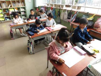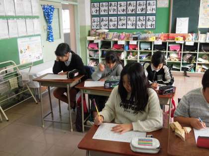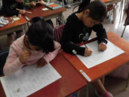 1年生と6年生は国語のプリント、3年生は算数のプリントをやっていました。