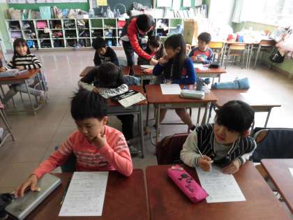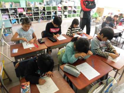 1年生と6年生は国語のプリント、3年生は算数のプリントをやっていました。